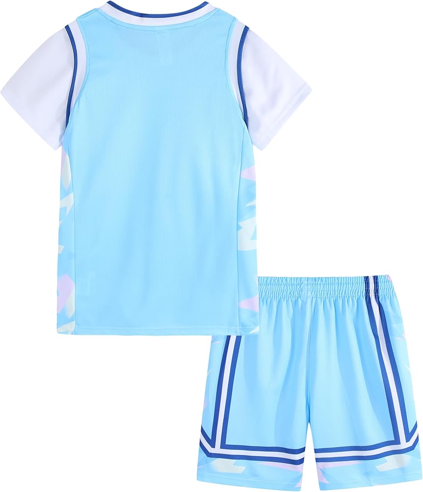 Girl's basketball uniform set consisting of a short-sleeved top and matching shorts. Bright colours and unique designs allow girls to show off their personality and energy.