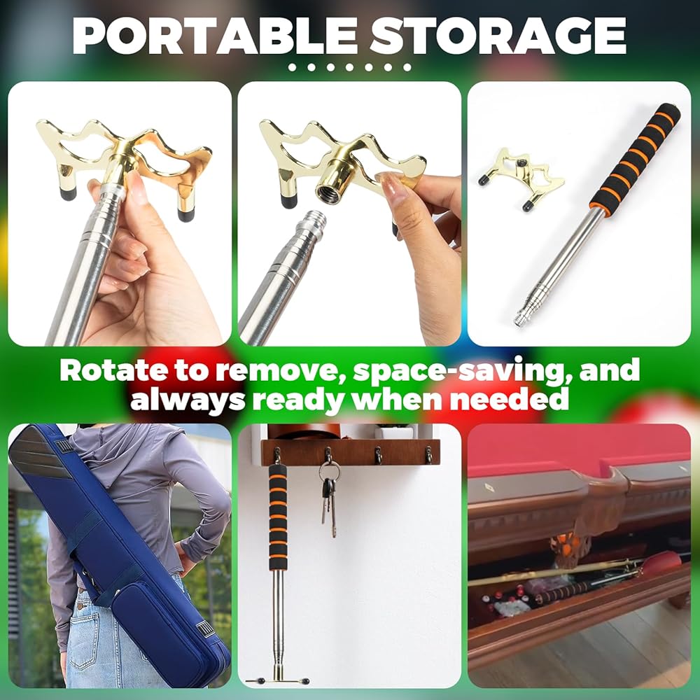 EXTENDABLE BILLIARD CUE BRIDGE: In billiards, a reliable and stable bridge is essential for those awkward shots. EOTJYAO extendable bridge can stretch from 13in/ 33cm to 63in/ 159cm. Whether you're shooting from a tight corner or need a longer reach, it handles every situation with ease, ensuring each of your shots is precise and powerful.