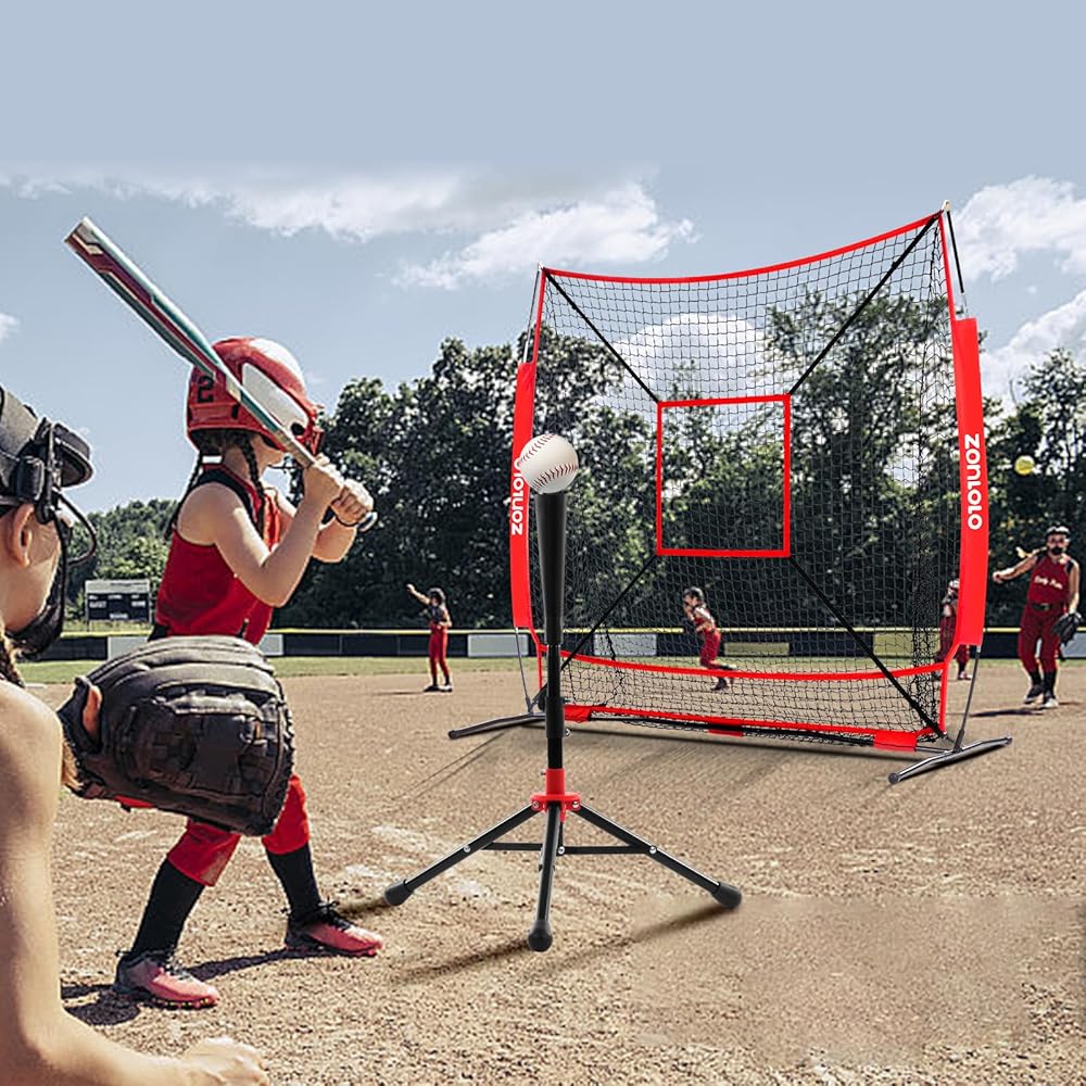 Zonlolo 6x6ft Baseball & Softball Net for Hitting,Pitching,Batting, and Accuracy Throwing Practice,Baseball net with Sturdy Bow Frame,Battting Tee,Strike Zone, Middle Size,Suitable for Kids!