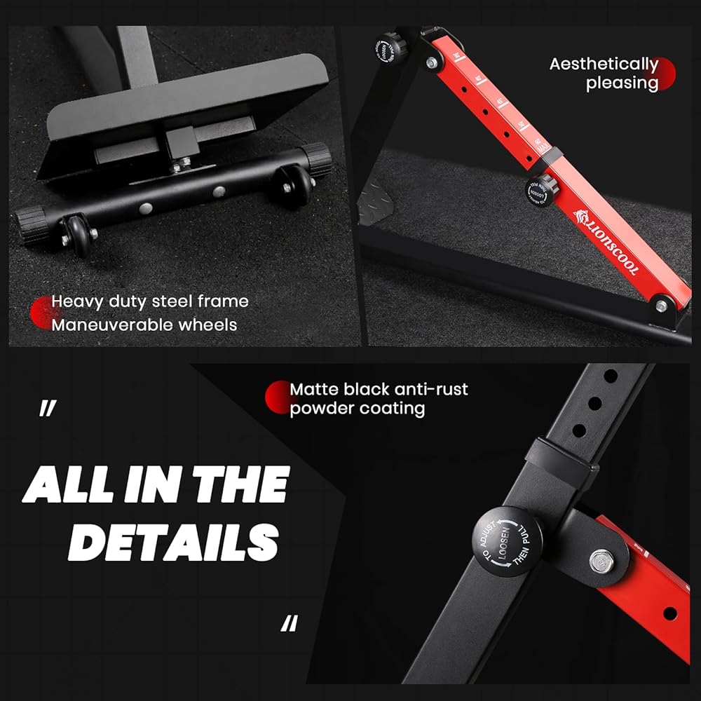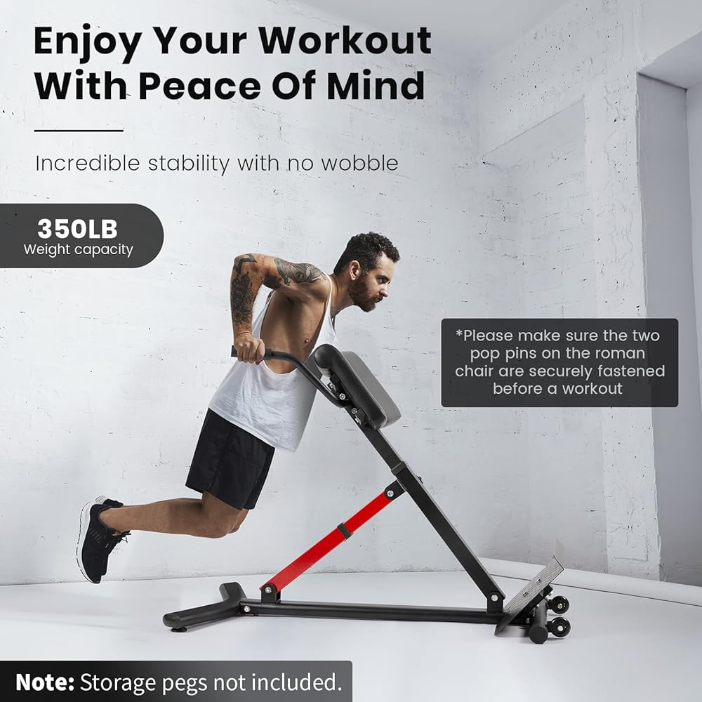 Designed To Endure: The LIONSCOOL Roman Chair is made of heavy-duty steel with a rust-resistant matte black powder coating. Its meticulously developed structural design ensures stability and durability. With a true weight capacity of 350 pounds, it provides firm support for workouts including back extension, side bend and hanging dip. By targeting key muscle groups such as the core, hamstring, lower back, and upper back, it effectively enhances strength and overall fitness levels