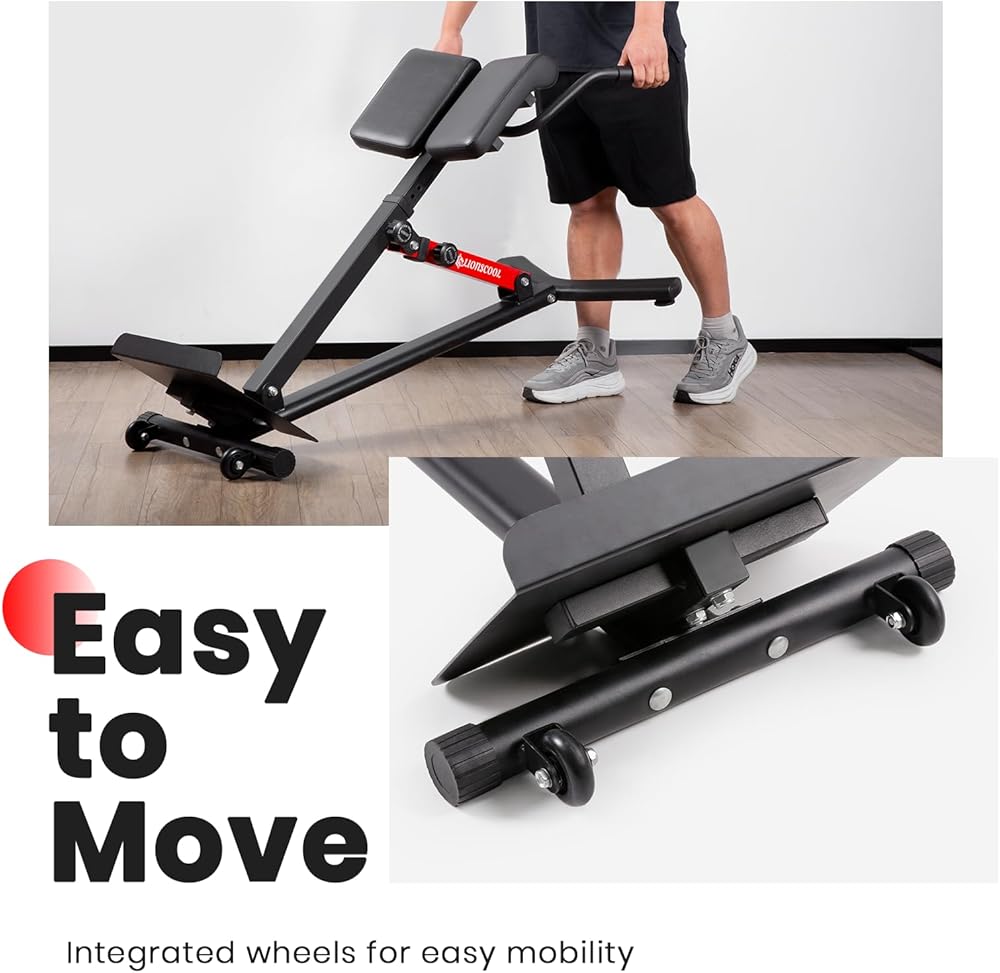 Upgrade Your Fitness Journey: Comfort is paramount during intense workouts. Our Roman Chair offers an extra-wide cushion with thick foam padding for optimal support, minimizing discomfort. Integrated wheels make adjusting the chair effortless, enhancing flexibility and saving space. Whether it's comfort or convenience, our Roman Chair will provide you with an exceptional user experience