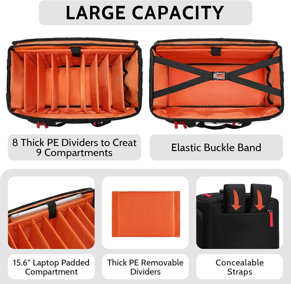 STURDY & DURABLE: This DJ bag crafted from wear-resistant and anti-scratch material with long-lasting durability, the bright orange lining keeps it easier to find your items quickly even in low-light environments, making it a reliable companion for DJs, musicians, and performers outgoing
