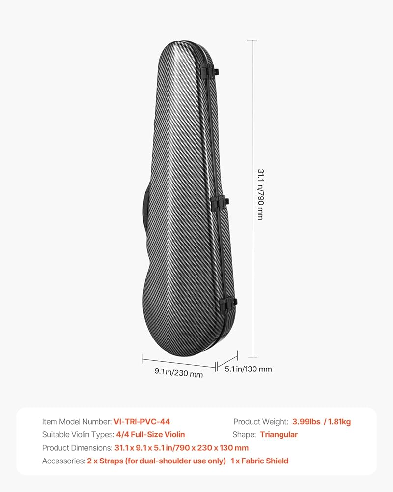 Lightweight and Portable: Weighing only 3.8 lbs/1.7 kg, the violin case is easy for anyone to carry. It can be worn over the shoulder reduce strain and keep the violin steady during transport