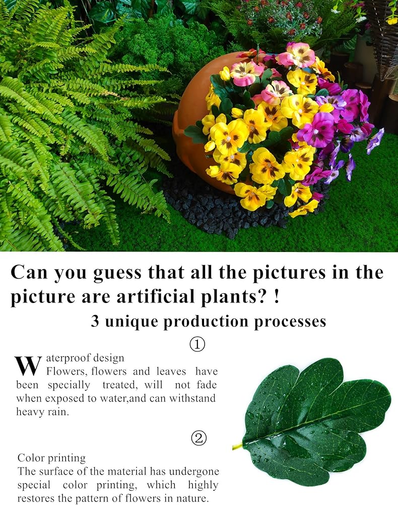 【 High Quality Material】- Faux outdoor flowers are made from high quality silk screen silk cloth. It's UV resistant and never fade, fresh color, poisonless and harmless.This silk bushes will never die off, can against fierce wind rainstorm.