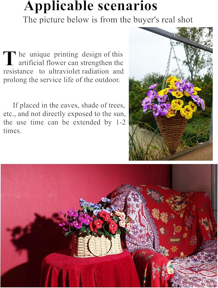 【 Outdoor Indoors Decorations】- The lifelike artificial flower creates a cozy ambiance, greenery plants for home, weddings, hotels, terrace, office, guesthouses, garden,front porch, walkway, kitchen, windowsill, living room, dining table, bedroom, diy projects, parties or any indoor outdoor decorations.