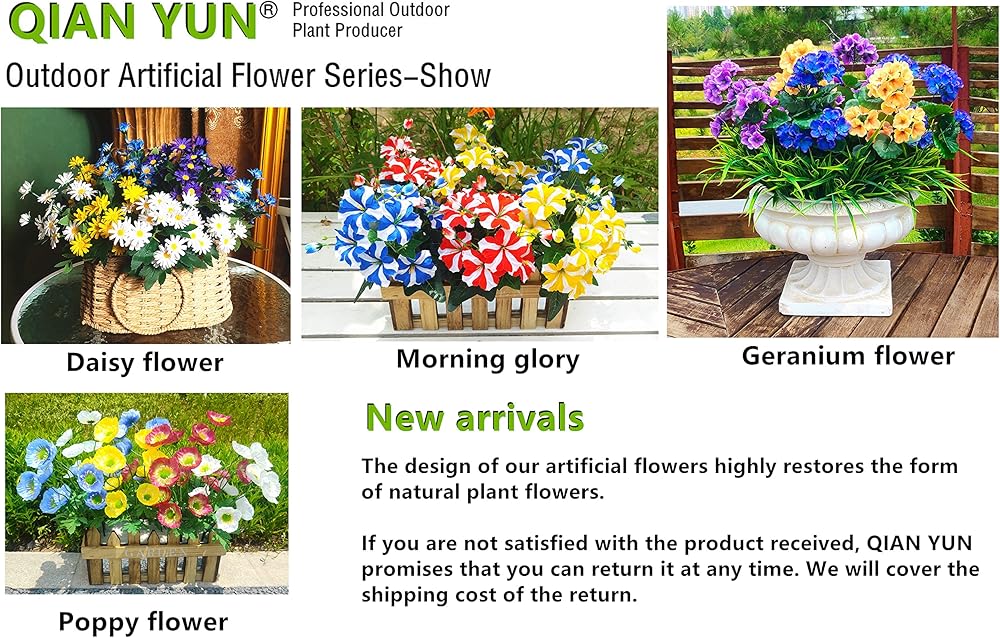 【Stable Flower Head】-The flower head part of the faux outdoor flowers is carefully combined, does not fall off easily. We offer kindly customer service and fast shipping, satisfaction guaranteed.