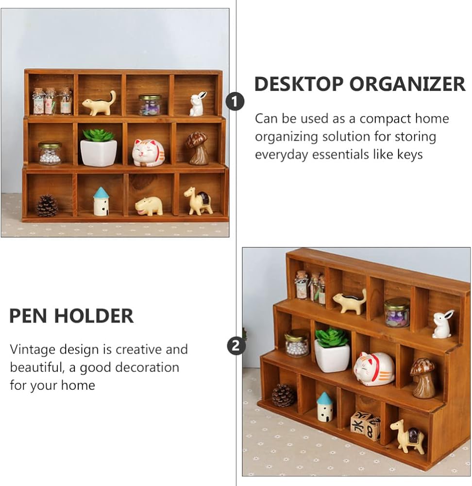 Cabilock Vintage Wooden Stair Storage Cabinet 12 Compartments Multi-Layer Desktop Organizer Shelf for Home D Cor Office Display Case 14.88 X 10.94 X 5.12 Inches