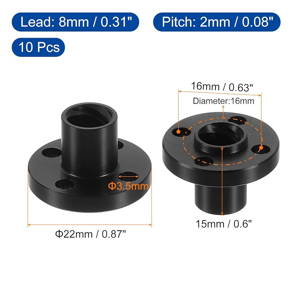 [Easy to Use] The lead screw copper nut is easy to use. Place the copper nut on the lead screw, make sure it is aligned with the thread groove of the lead screw, and slowly rotate the lead screw to gradually screw the copper nut along the lead screw until it reaches the desired installation position.