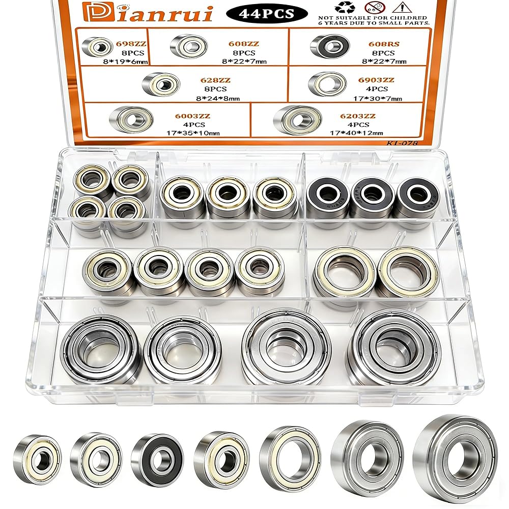 Bearing number and size: 608RS(8mm x 22mm x 7mm)—8pcs 608ZZ(8mm x 22mm x 7mm)—8pcs 698ZZ(8mm x 19mm x 6mm)—8pcs 628ZZ(8mm x 24mm x 8mm)—8pcs 6903ZZ(17mm x 30mm x 7mm)—4pcs 6003ZZ(17mm x 35mm x 10mm)—4pcs 6203ZZ(17mm x 402mm x 12mm)—4pcs