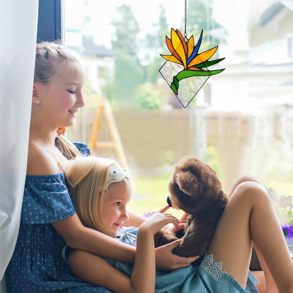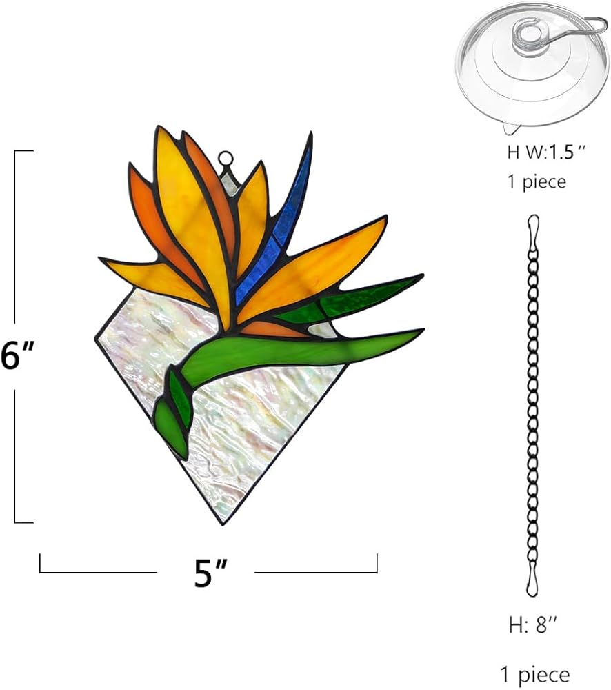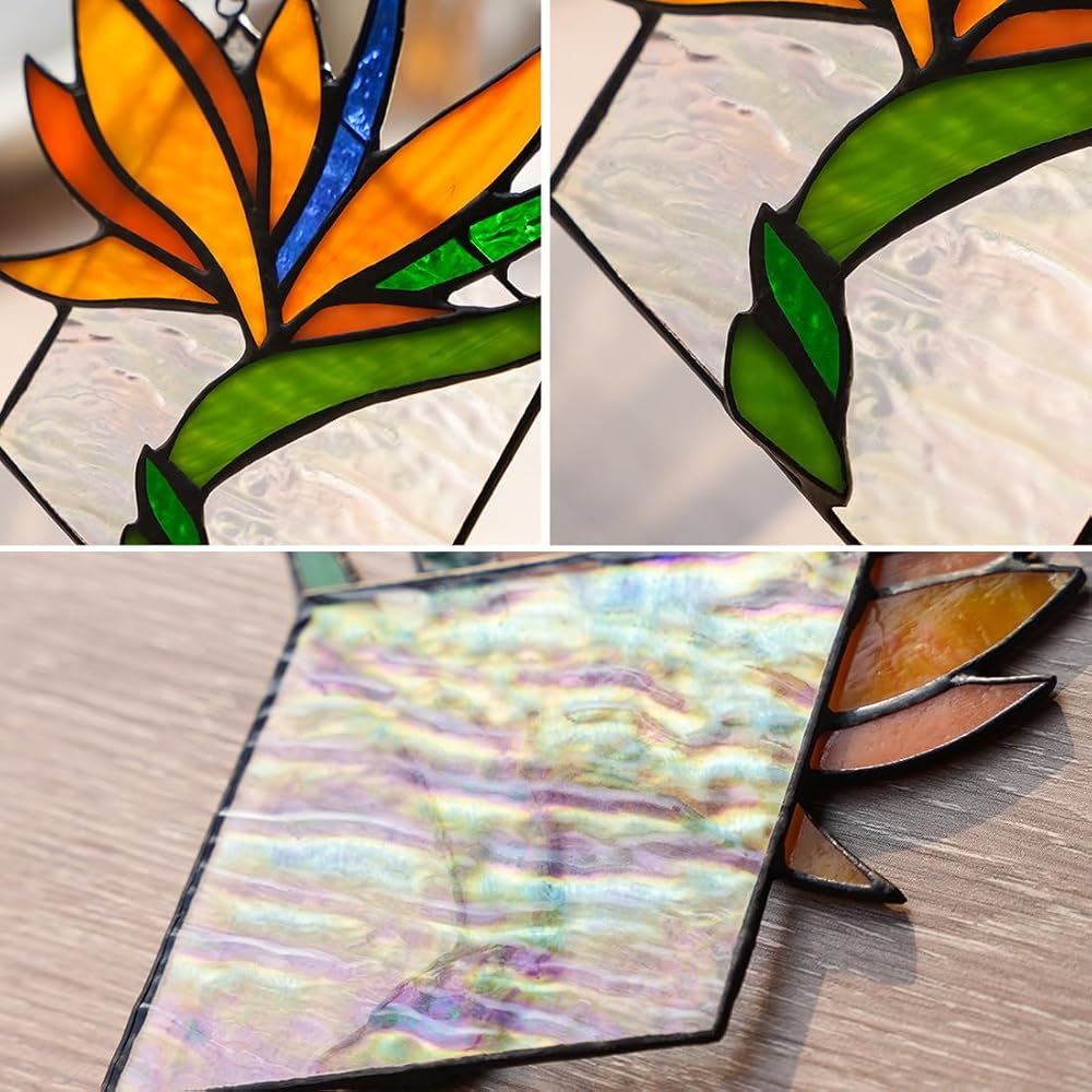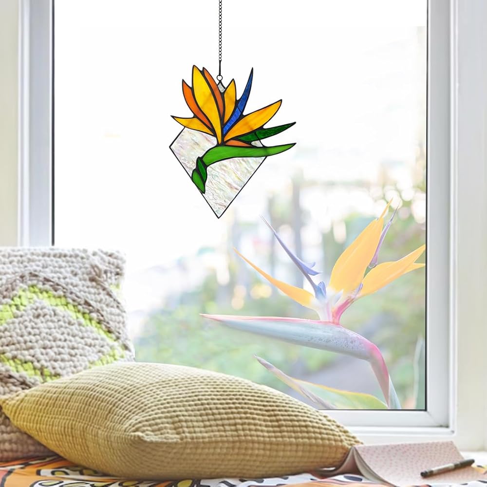 BOXCASA Bird of Paradise Flower Decor Stained Glass Window Hanging,Artificial Flowers Gift for Women Stained Glass Suncatcher,Bird of Paradise Flower Gift for Mom Aunt Sister Friends
