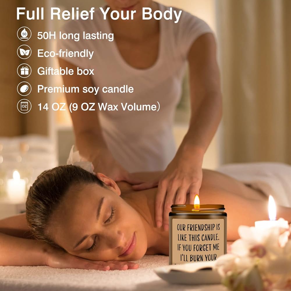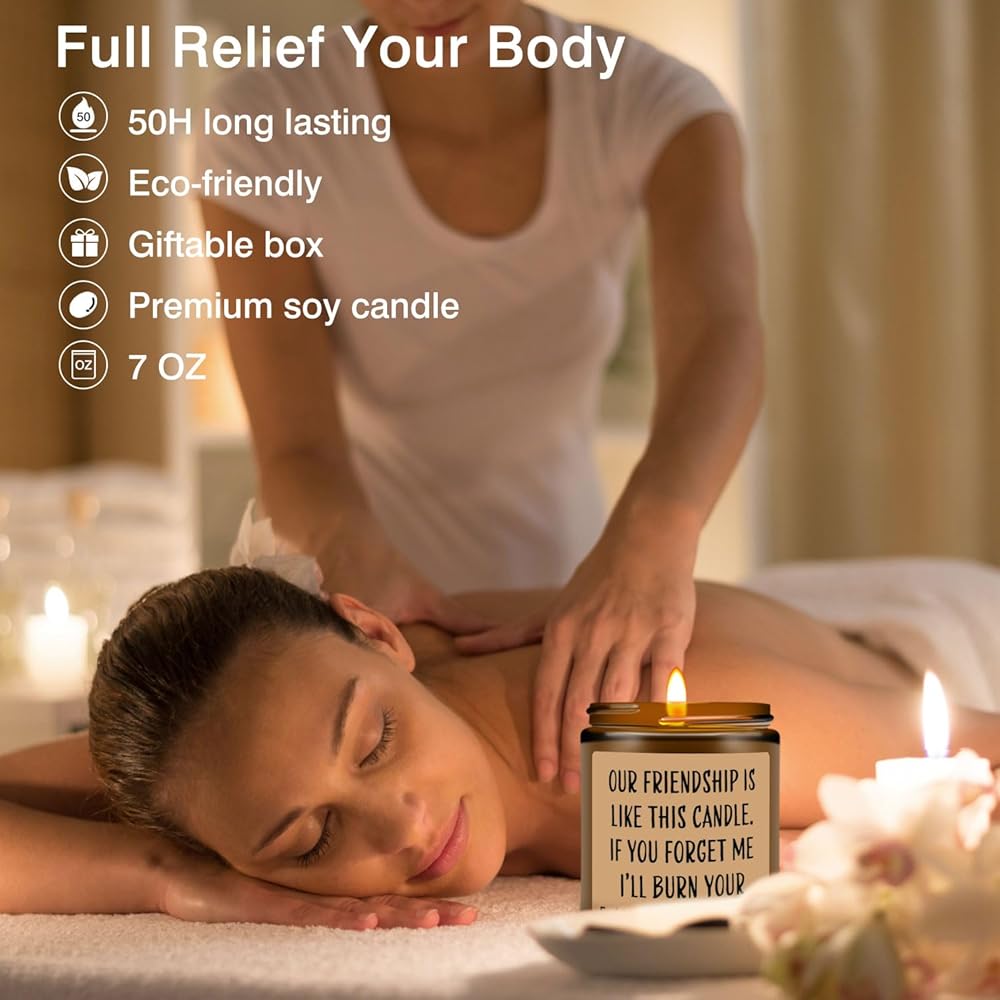 FRIENDSHIP GIFTS FOR WOMEN FRIENDS: These cute gifts with sayings on the jars are lavender-scented candles made from 100% natural soy wax, and they can last burning up to 50 hours and smell great. You could remind the gift receiver that the candles can be placed in the bathroom, bedroom, living room, kitchen, or anywhere she likes. They can even be used to create an atmosphere while camping or having a picnic. Keep being careful while using!