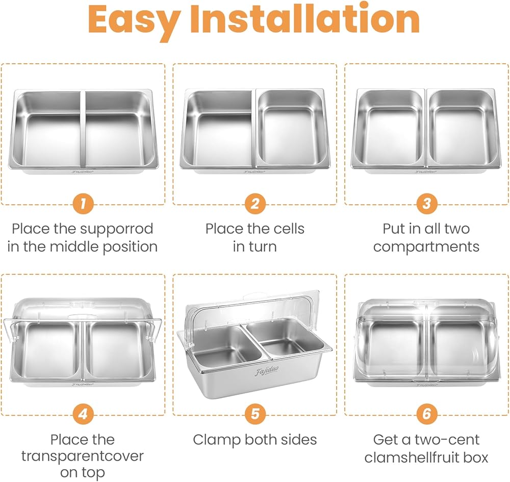 2 Pans - Condiment Tray Set Made of food-grade stainless steel, this condiment tray set is stable and resistant to deformation. This cold food serving container can accommodate 2 different condiments, meeting a variety of your needs.