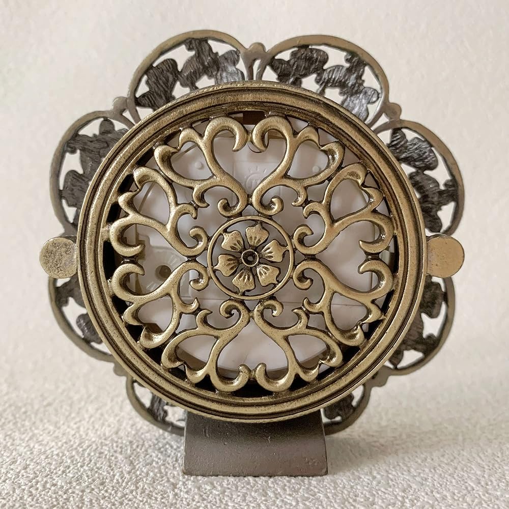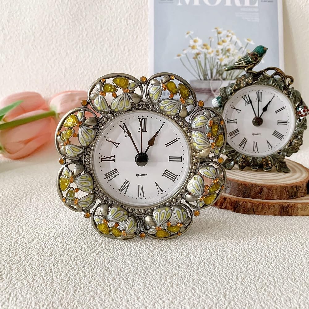 [Premium Materials & Vintage Design] - This vintage table clock is made from durable metal body and high quality silent clock core(Battery Opereated). Hand-Painted body, creative design of delicate flowers, manually inlaid crystals and refined carvings give the aesthetic table clock an elegant vintage look. You will fine our antique table clock is perfect in every details.