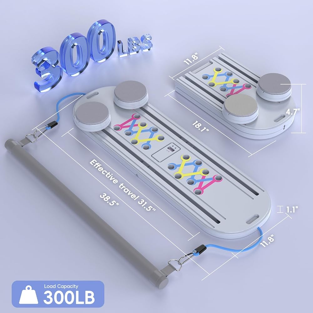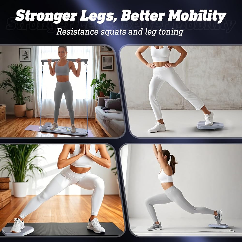 【All in One Full-Body Workout Pilates Board】 Unlock 15+ exercises in one compact pilates equipment! This multifunctional abdominal board supports planks, side planks, advanced dynamic planks, crunches, knee tucks, bicep curls, squats, goblet squats, lunges, calf raises, wide-grip push-ups, close-grip push-ups, tricep dips, and more. Designed to tone muscles, build strength, and improve flexibility, it's the ultimate fitness tool for home or on-the-go workouts