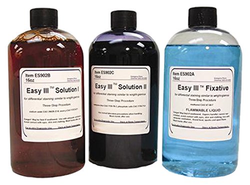 Azer scientific offers easy III, a three-step rapid Differential stain. These products have been routinely used for Differential staining of blood smears, blood parasites, microbiological organisms and bone marrow specimens. Easy III has extensive applicability in cytology for use in fine needle aspiration analysis. The product will process a specimen in 30 Seconds and utilize a fixative and two staining solutions to achieve the desired results.