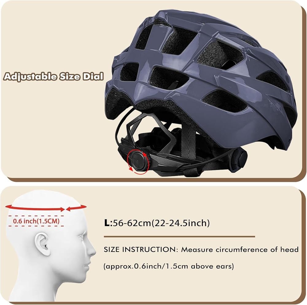 Customizable Fit for All Adults – Adjustable dial system (56-62cm head circumference) and padded chin strap ensure secure comfort for men and women, whether mountain biking or urban cycling
