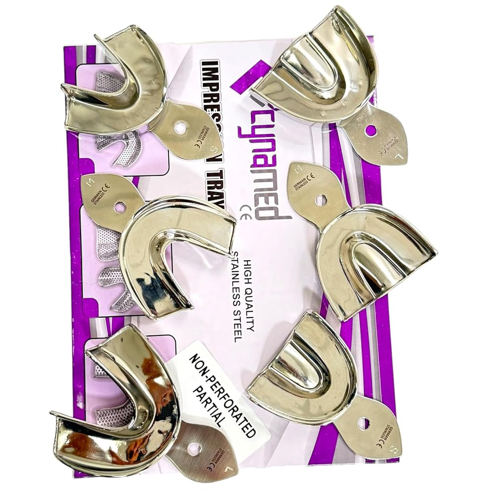 German Stainless Steel Impression Trays have long been the first choice of most schools and dentists worldwide. These trays are available in many different sizes, shapes and types including full or partial, solid or perforated, and pediatric. When poured and mounted on the articulator, Check Bite Impressions produce a pair of contemporary, separable models in true occlusal relationship. PRODUCT DETAIL : SET OF 6 Pcs Dental Autoclavable Metal Impression Trays Stainless Steel Small, Medium, Large -Upper and Lower UPPER AND LOWER SMALL 1 UPPER, SMALL 1 LOWER, MEDIUM 1 UPPER, MEDIUM 1 LOWER, LARGE 1 UPPER, LARGE 1 LOWER