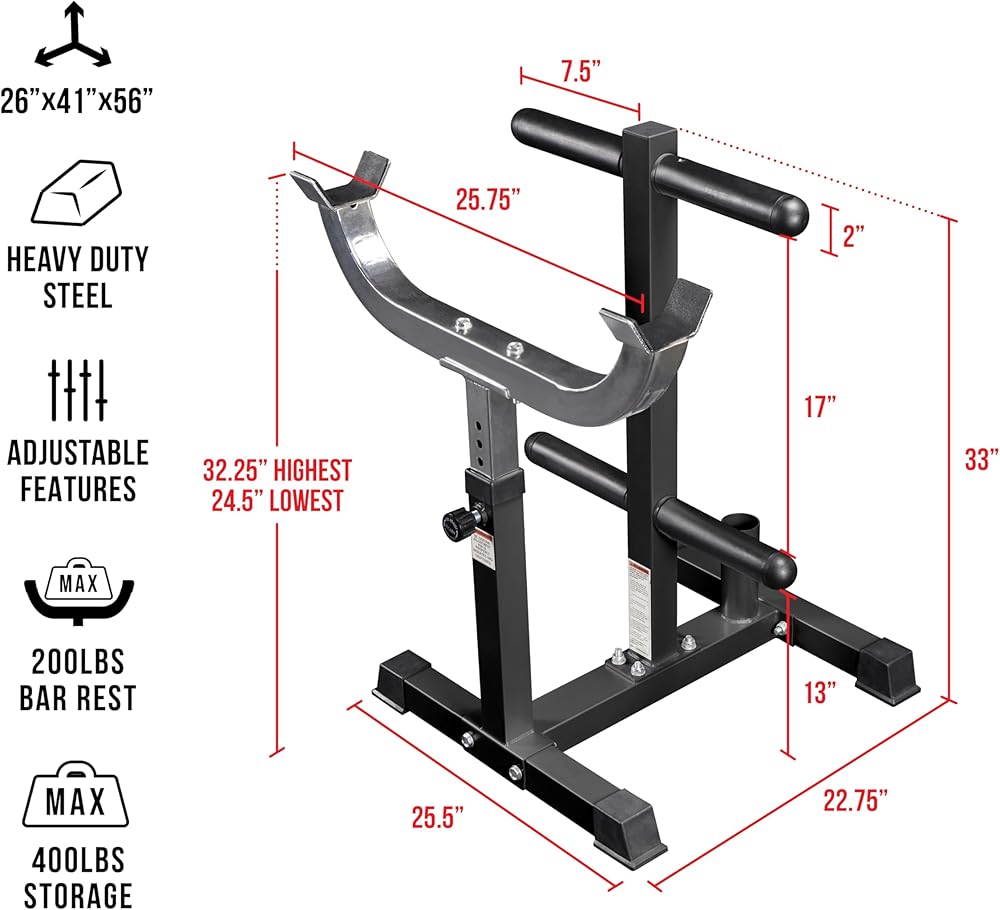 AMPLE HOME GYM STORAGE- The CB-7 features 4 storage pegs for Olympic weight plates, consolidating your weights for a safe and organized home gym. Each weight storage peg can hold up to 100 lb of plates (400 lb max weight load).