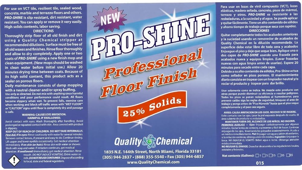 PROFESSIONAL SHINE - Pro Shine High Solids Commercial Wet-Look Floor Finish Wax provides a long-lasting, high gloss finish with minimal effort. Perfect for use in commercial and residential settings. Make your floors look Cleaner!