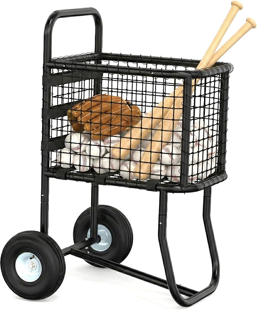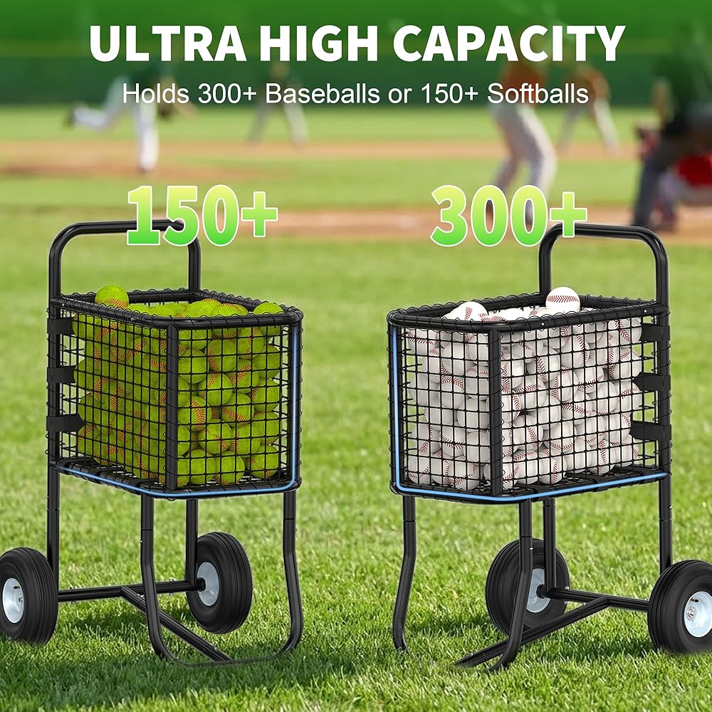 Large Storage Capacity – Holds 300+ Baseballs or 150+ Softballs: With a basket size of 17.7" × 17.7" × 25.6", this cart offers ample space to hold over 300 baseballs or 150 softballs, making it perfect for team practices, training sessions, or game day prep