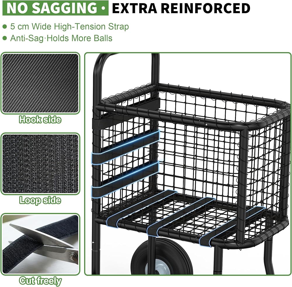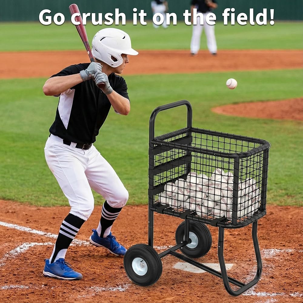 Heavy-Duty Powder-Coated Steel Frame for Maximum Durability: Constructed from reinforced powder-coated steel, this ball cart is built to withstand daily use, rough handling, and outdoor field conditions—ensuring long-lasting performance season after season