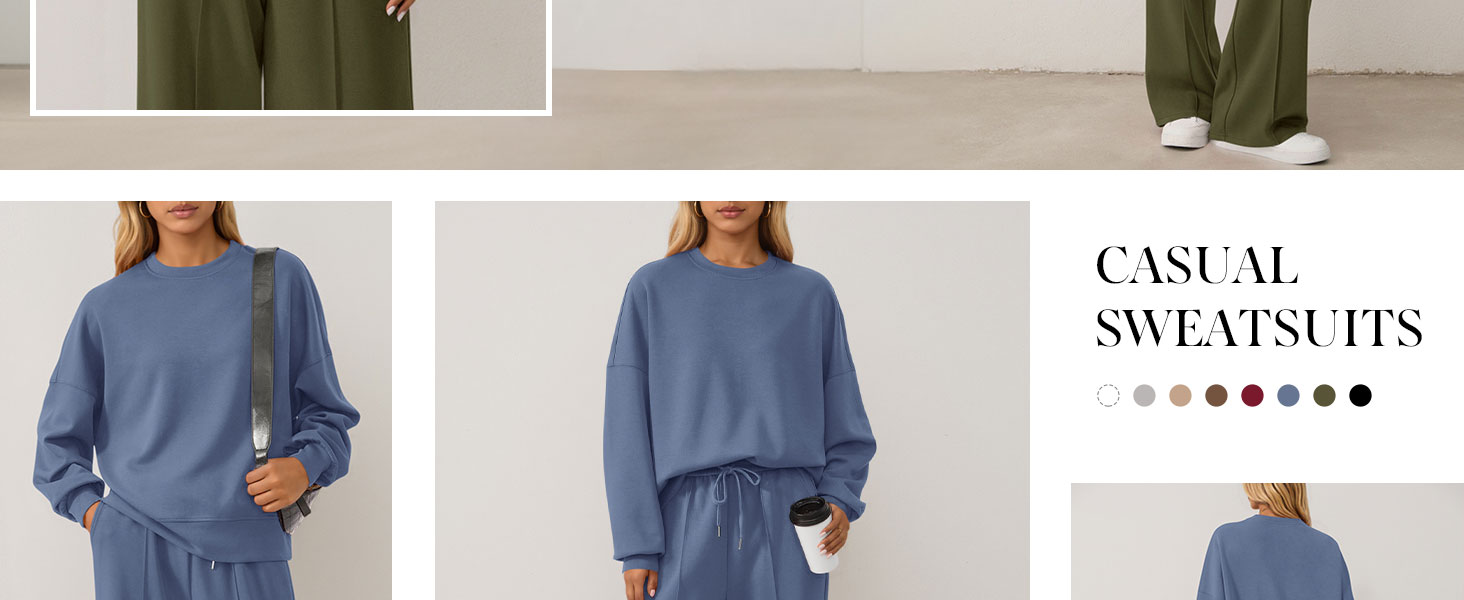 STYLISH FEATURES: Crewneck Sweatshirts Women; Sweatsuits For Women; Track Suits For Women Set; Sweatpants Women Baggy; Long Sleeve Top; Two Piece Sets For Women Fall; Womens Matching Sets; Wide Leg Pants Woman; Womens Knit Set; Lounge Sets For Women