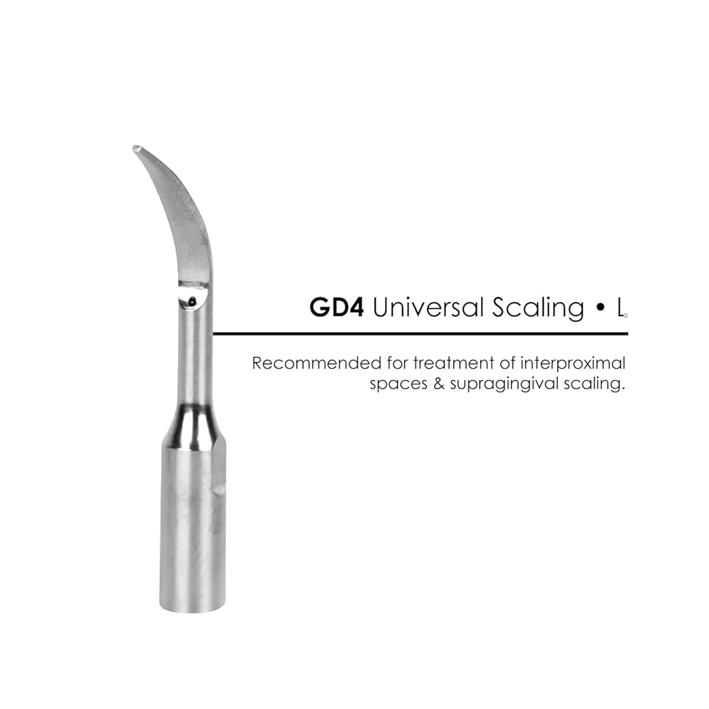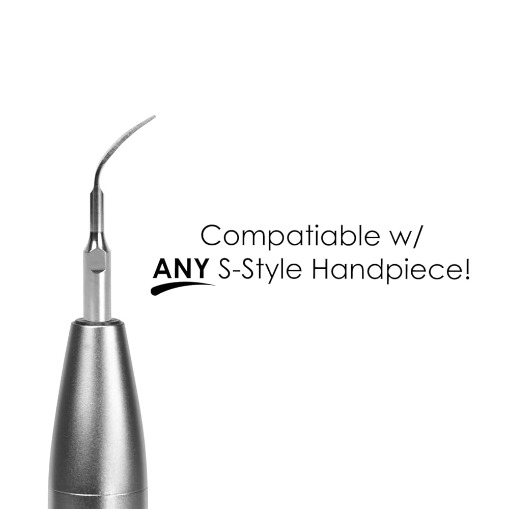 The PD1 S-Style Perio Slim Tip features a slim and pointed design. It is recommended for effectively removing and flushing out deposits below the gingiva line.