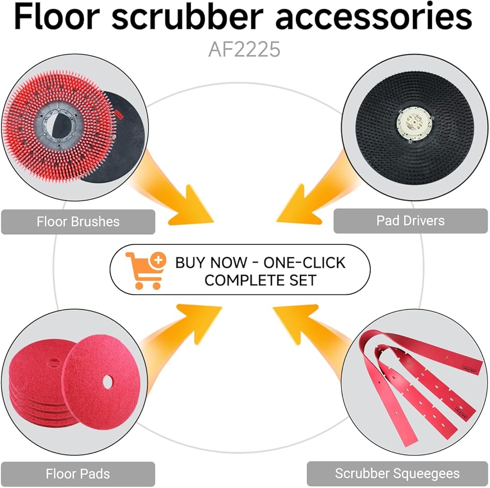 Powerful and versatile: Top-tier suction and U-shaped squeegee ensure excellent cleaning results on multiple hard floors like tile, concrete, marble, epoxy, slate, and granite. With 88lbs of pressure at 155 RPM, it delivers powerful cleaning performance. The all-in-one scrubbing kit includes brush, pads, and pad driver, reducing the need for additional purchases and offering versatile cleaning power right out of the box