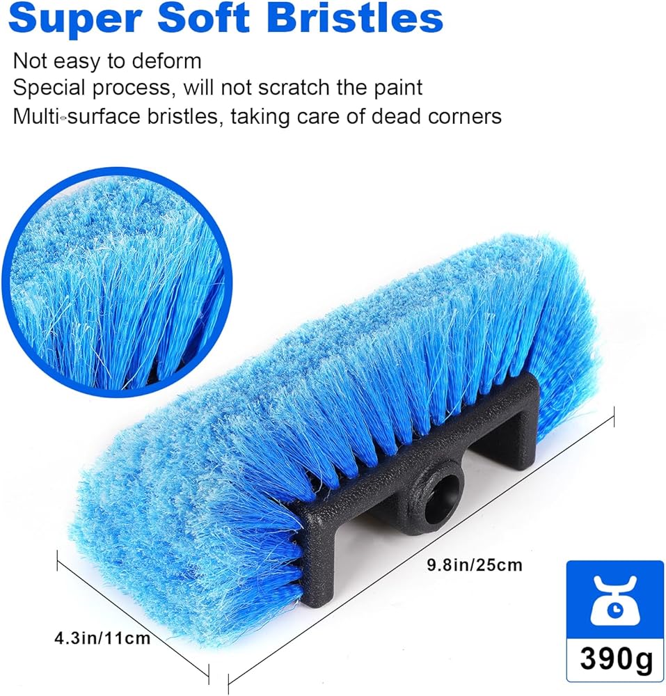 No Scratch Soft Bristles: This brush head uses premium soft PVC brush hair to ensure that it will not cause any scratches on the surface of the car paint during use. The car cleaning brush is about 11 inches long, suitable for most standards for 3/4 inch outer thread broom strokes or extended brush rods.