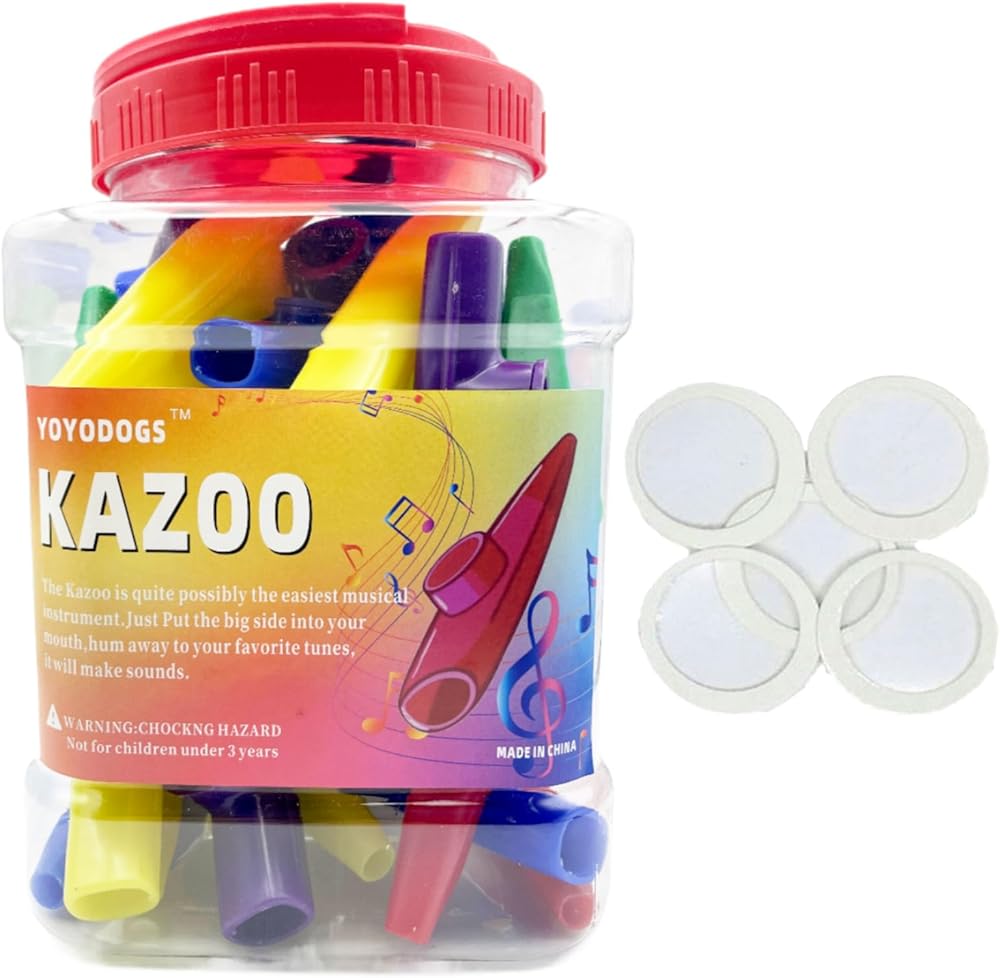 32Pcs Plastic Kazoos with 36Pcs Kazoo Flute Diaphragms,Bulk Multiple Colors Kazoo for Adult Musical Instruments Tones for Classroom Party Favors Comedic or Playful Purposes
