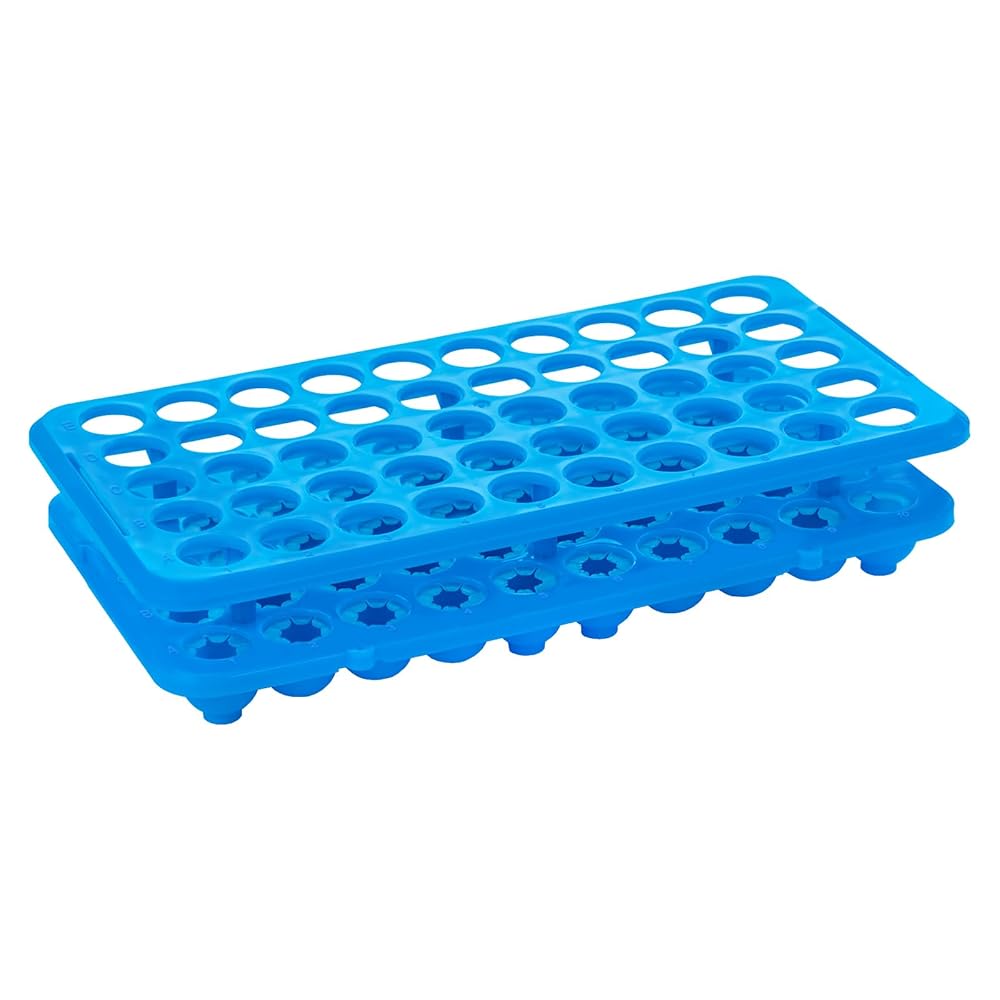 Test Tube Rack, Plastic Test Tube Holder with Silicone Pad, 50 Holes Centrifuge Vials Racks for 5ml/10ml/15ml Tubes, Hole Diameter 15 mm, Detachable, Blue, Pack of 1
