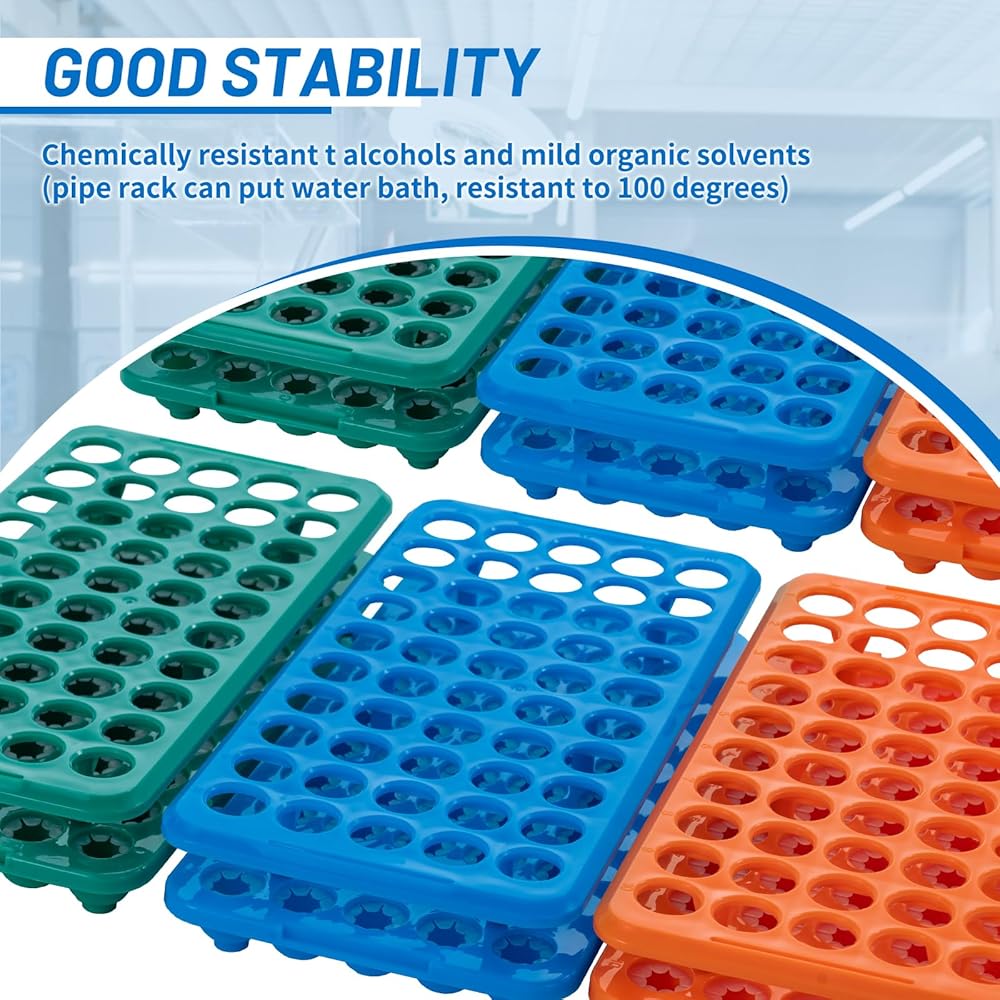 Durable & High-Quality Material:Made of high-strength plastic, this centrifuge tube rack offers excellent resistance to acids, alkalis, and organic solvents, ensuring long-lasting durability without deformation or corrosion