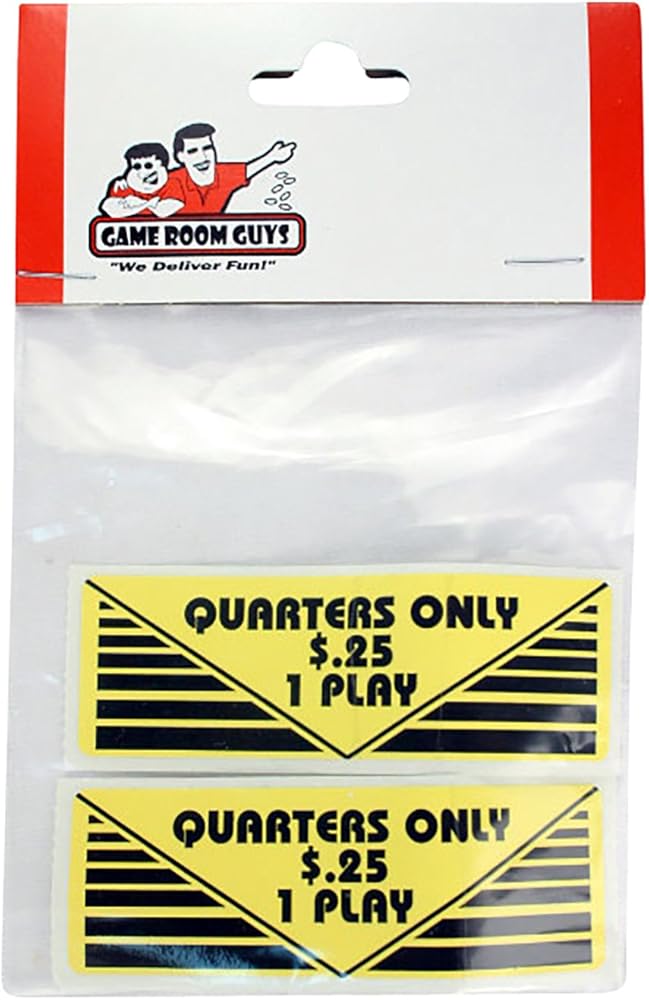 Class up your arcade game or pinball machine with a new label sticker! Letthe customer know the exact price and currency required for the machine with these great labels! Set includes 2 label stickers. Size: 1-1/8"H x 3-3/8"W