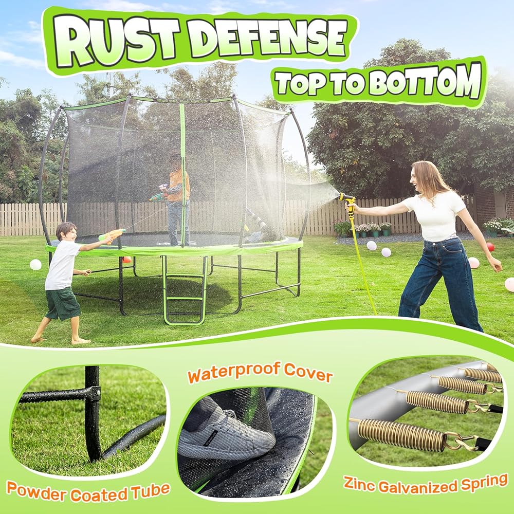 Playground for years to come - Endless fun - Our trampoline is designed to look as good as new in a long time, with twice GALVANIZED sturdy frame and springs, expertly black POWDER-COATED legs, offering superior RUST PROTECTION in rough weather. Your children can make lasting memories, just jump and the fun never ends.