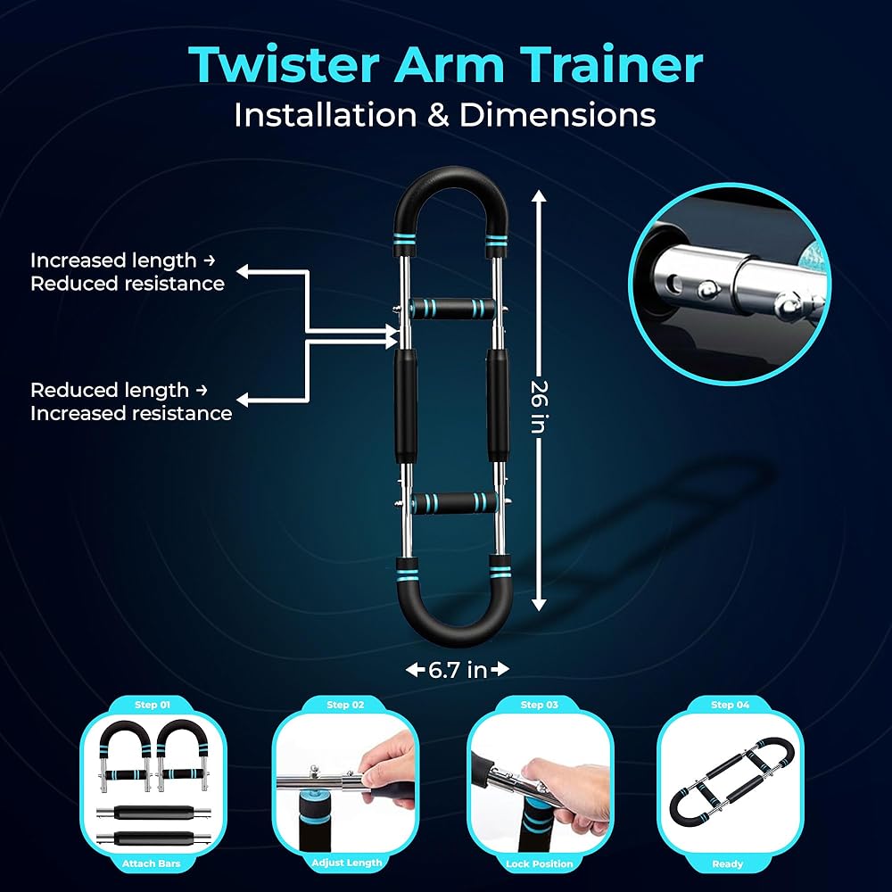 Twister Arm Trainer – Power Adjustable Chest & Arm Workout Bar, Dual Resistance 40–90/65–110 lbs, Upper Body Strength Training for Arms, Chest & Shoulders, Home Gym Portable