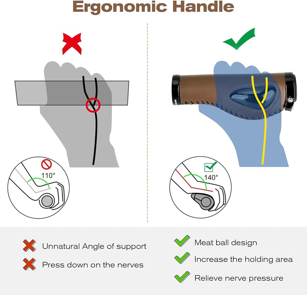DURABLE BIKE HANDLEBAR GRIPS WITH ANTI-SLIP TECH:High-density PU mountain bike grips withstand rain, heat, and freezing temps. Non-slip surface ensures secure grip for MTB, road bikes, and commuter bicycles.
