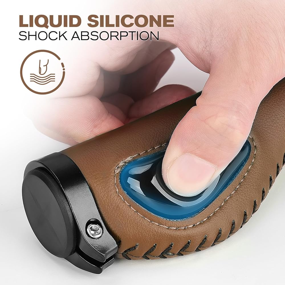 VIBRATION-DAMPING BICYCLE HANDLEBAR GRIPS:Liquid silicone core absorbs 70% of shocks on cobblestones/rocks. Protects wrists with advanced gel-layer technology in road bike grips.