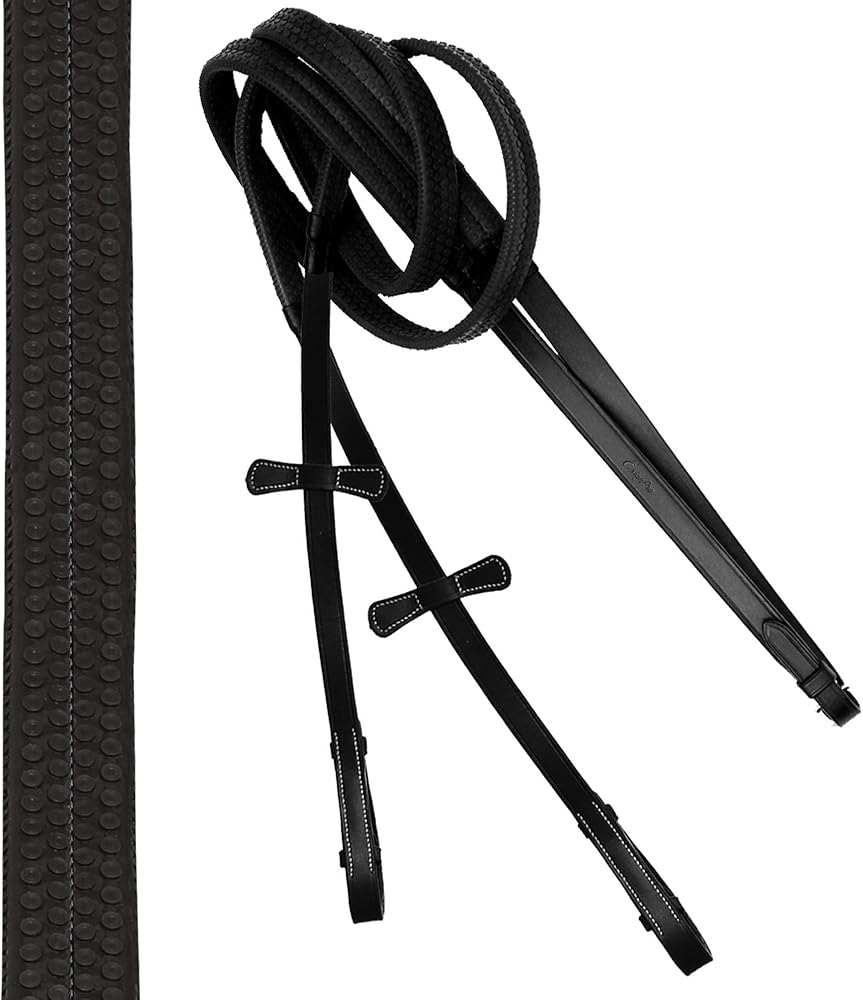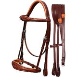 The fancy stitched, raised browband and noseband offer a sophisticated look while providing soft, cushioned support for enhanced equine comfort. The soft rubber reins provide a superior grip, allowing for a steady connection between horse and rider. Precision stitching with 10-12 stitches per inch ensures durability and a polished finish.