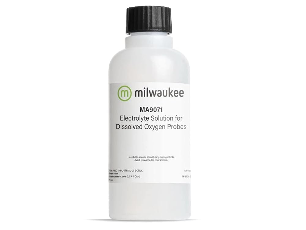 Milwaukee Instruments offers a wide variety of solutions and buffers to maintain optimal calibration and performance of their products. MA9071 is a refilling Oxygen Electrolyte Solution available in 230 mL containers. This product is specially formulated to enable optimum performance of the Mi190 Extended Range Bench Dissolved Oxygen meter, the Mi605, and SM600 Portable D.O. meters.