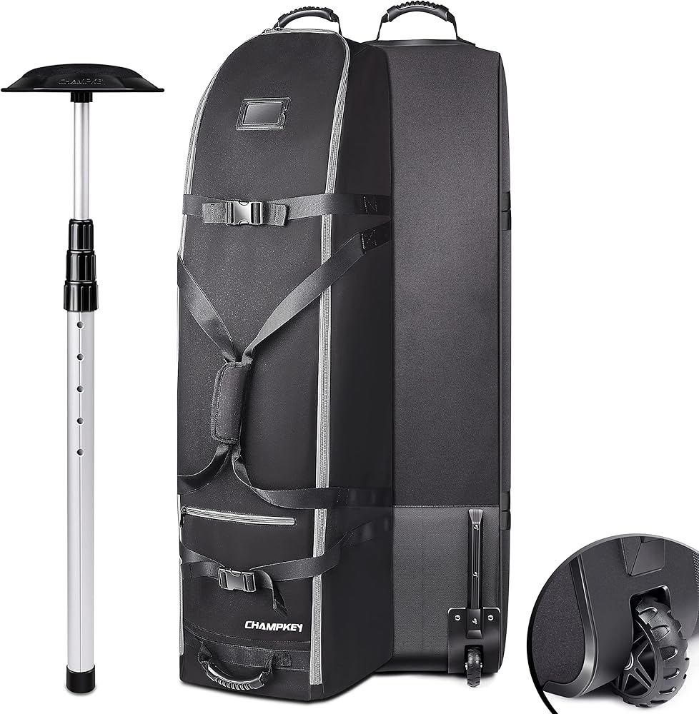 HIGH PERFORMANCE FABRIC:The CHAMPKEY golf travel bag is made of high-quality material, featuring characteristics such as abrasion resistance, waterproofing, and tear resistance. This design ensures that the bag can withstand various environments during travel, providing golf enthusiasts with reliable protection and usability experience.