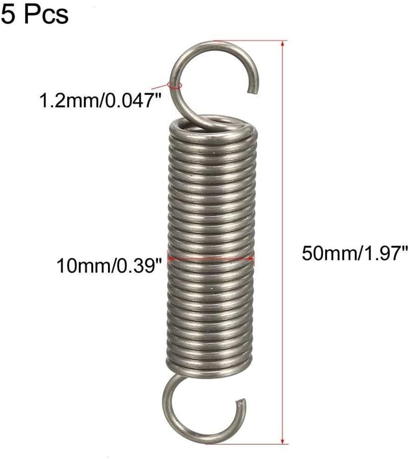 Nickel Wire,Nickel Element Stainless Steel Spring, Metal Springs 5pcs Extended Tension Spring WD 1.2mm / 0.047", OD 10mm / 0.39", Free Long 50mm / 1.97" Spring Steel Mini Dual Hook Tension Spring 5pcs