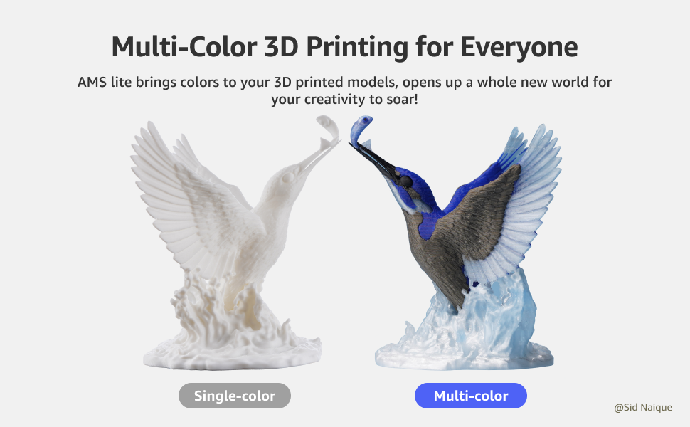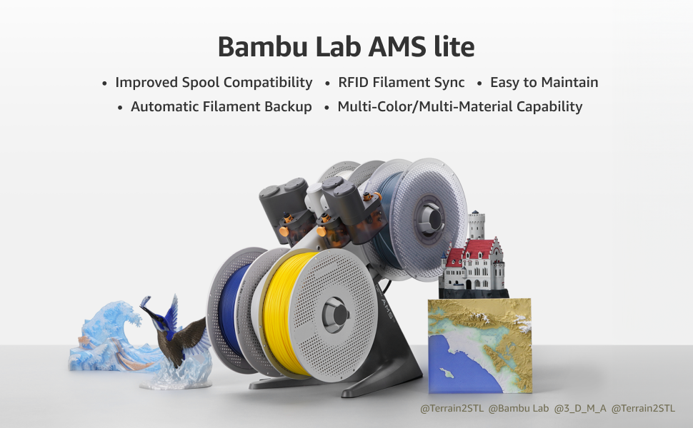 Hassle-free Support Removal: Bambu Lab AMS lite supports multi-material printing. With AMS lite, Bambu 3D printers can use snap-away support material or dissolvable filament to minimize the pain of removing supports.