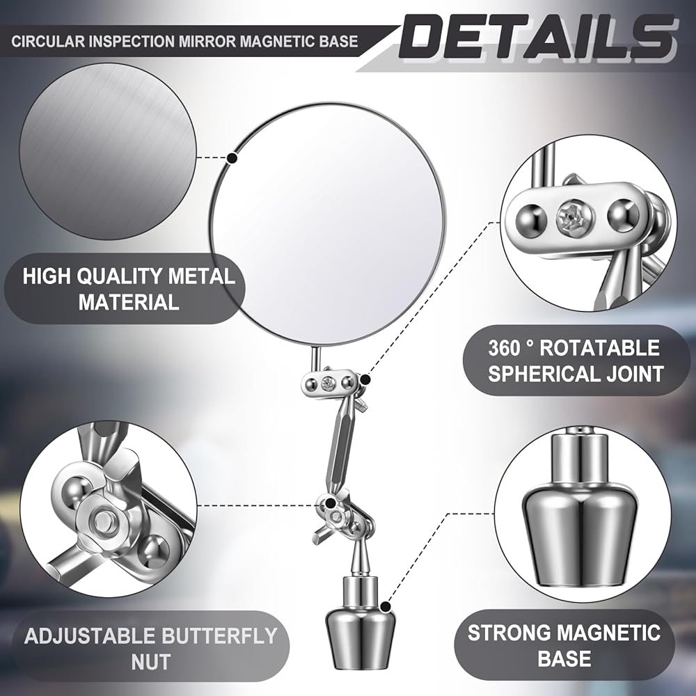 The 2 inch inspection mirror adopts a ball joint and butterfly nut design, which can be easily adjusted to any angle and firmly locked to ensure that the mirror surface is stable and does not deviate during the inspection process.