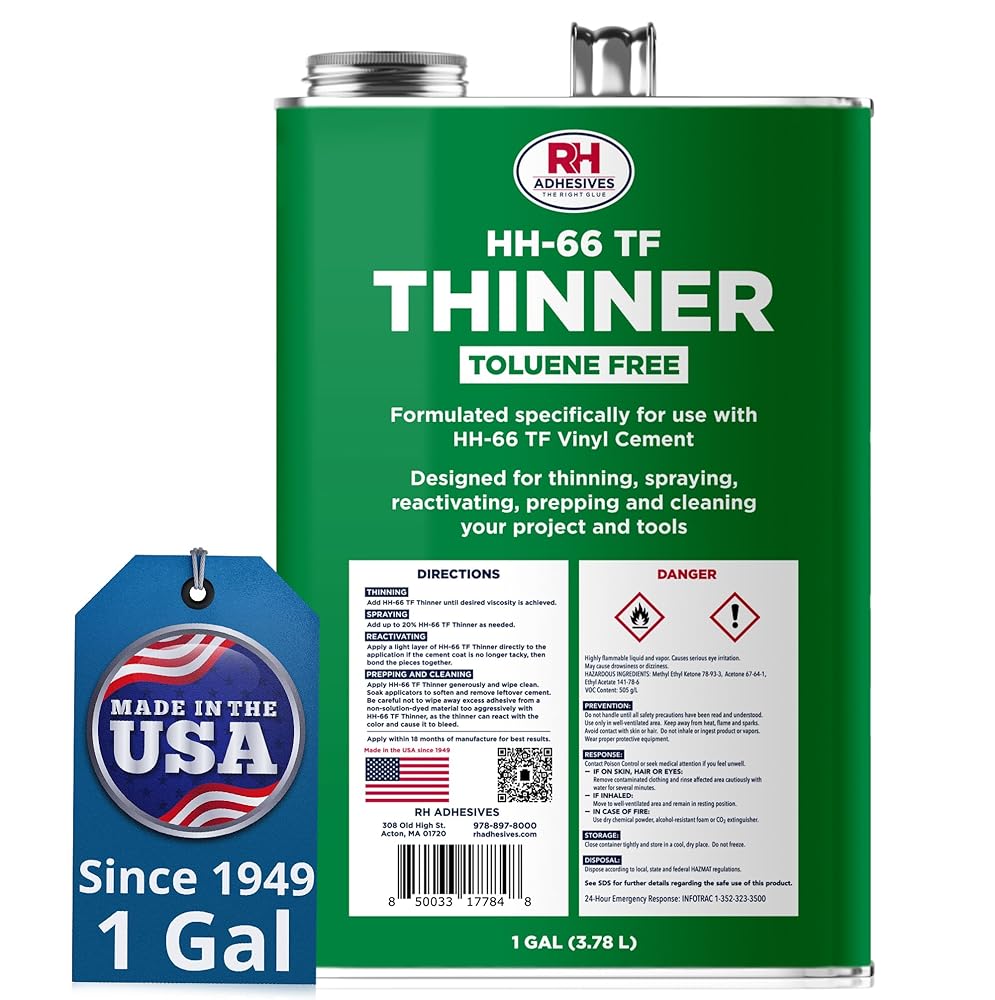 • Reactivate Dried HH-66 – When using RH Adhesives' HH-66 Toluene Free Vinyl Cement, our matching thinner will help reactivate an old application of adhesive for new bonding or help the adhesive in the container reach the desired consistency