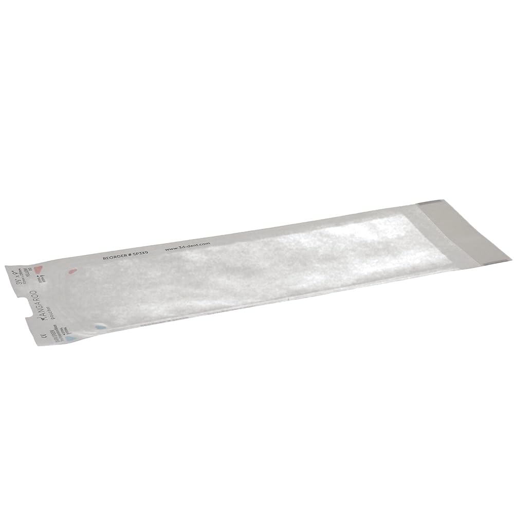 3.50" x 9" Self-Sealing Paper/Blue Film Sterilization Pouch with Color Changing Indicator, Box of 200. Guarantees maximum sealing performance. Leak-proof. Easily opened and sealed. Developed with zero latex composition. Kangaroo Self-Seal Pouches are lead- and latex-free self-sealing sterilization pouches, guaranteeing accuracy and dependability with their built-in color change guide. Compatible with autoclaves and ethylene oxide chambers, these pouches ensure a tight seal without any breaches, surpassing medical pouch standards.Kangaroo Self-Seal Pouches are made of medical-grade paper and include a thumb notch for hassle-free opening action. SelfSeal is available in different sizes to suit the clinicians' needs when sterilizing dental items and instruments.