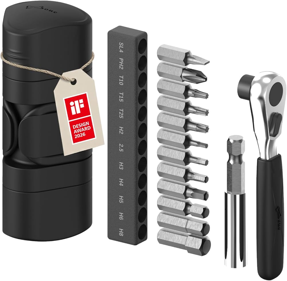 BONE Bike Portable Tool Kit Lite, iF Design Award 12-in-1 Bicycle Tool Bag, Scratch-Free & Waterproof Silicone Capsule for Repair, Cycling Tools with Ratchet Wrench for Biking & Home Repair