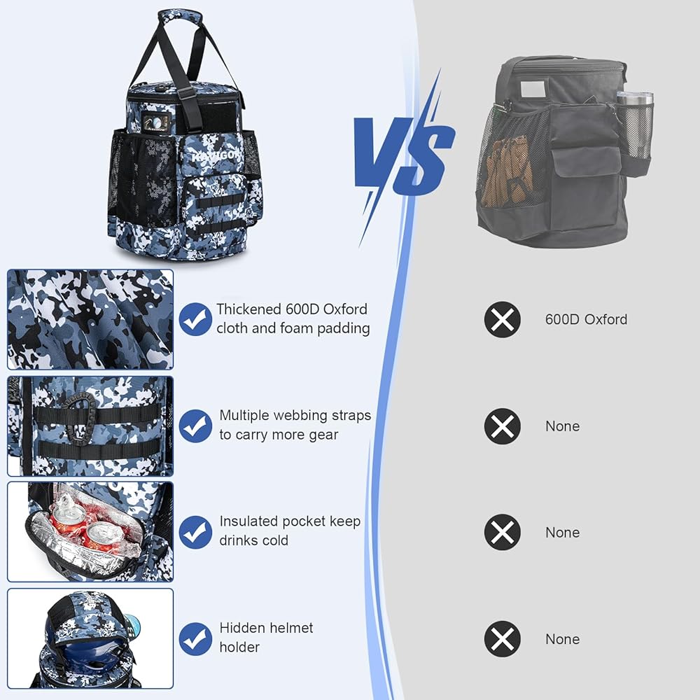 Spacious & Multi-pocketed: With multiple pockets, this softball coaches bag can hold bats, gloves, clothes, water bottles, and scoreboards. It also includes a hidden helmet compartment and an insulated pocket for drinks and snacks, ensuring you stay energized during long training sessions