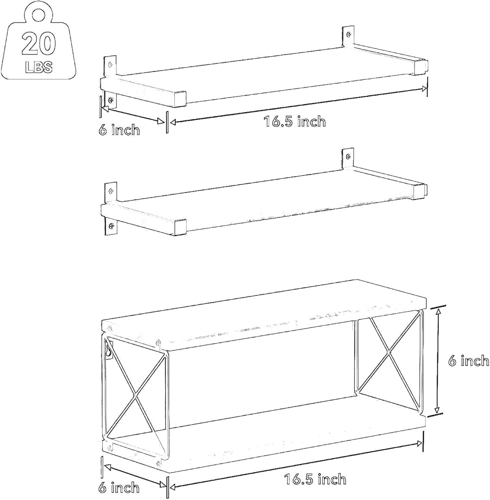 Size:4 pcs 16.5*6*6 inches pine wood and X-shape brackets, each shelf can hold up to 20 lbs.