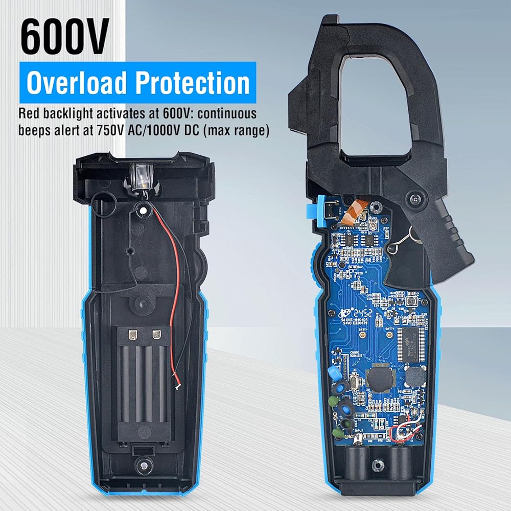 【MULTI-FUNCTION】Support Data Hold, True-RMS, Automatic Range, SEL fuction, Max/Min, Auto Shut-off, Low Battery Indicator and Continuity Buzzer; Includes Convenient features like Audial and Visual Alarm,LCD Backlit Screen and Flashlight make it easy to use;Temperature Measurement for liquids and air conditioning ports,press SEL key to switch ℉ and ℃;Full range Overload Protection(600V);Two 1.5V AAA batteries are included in the package