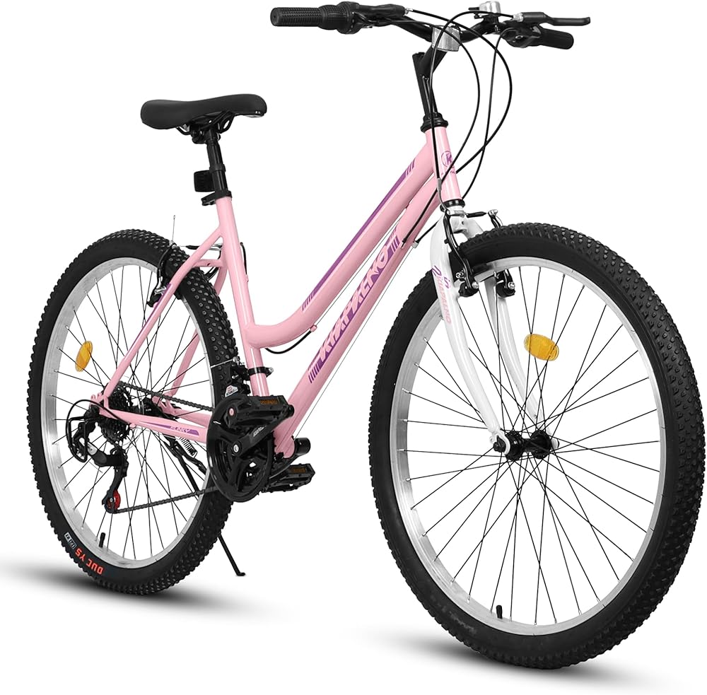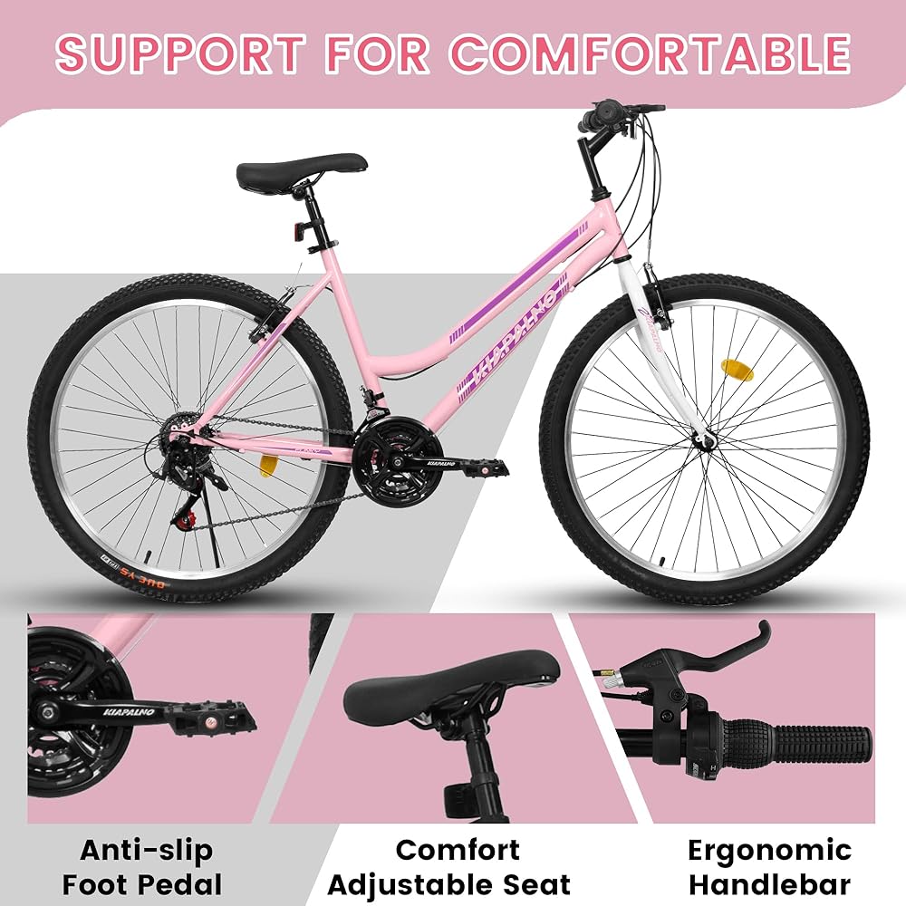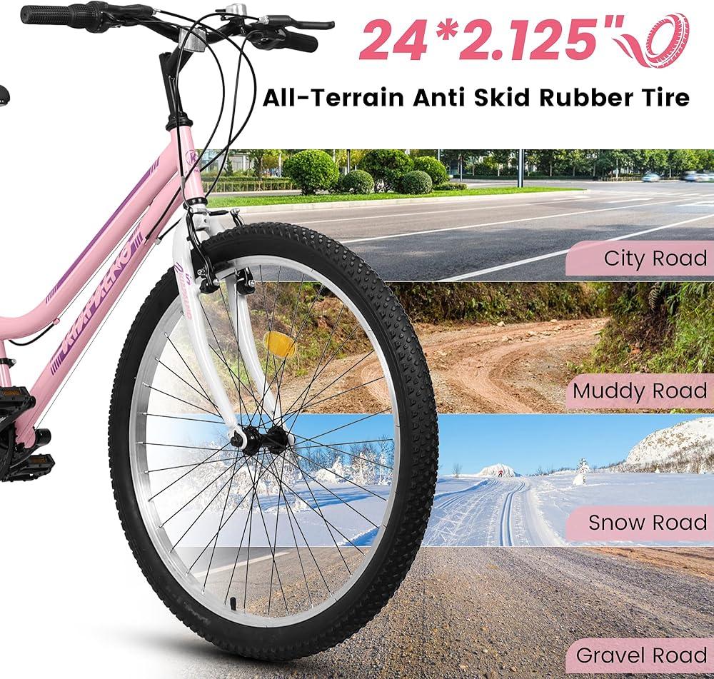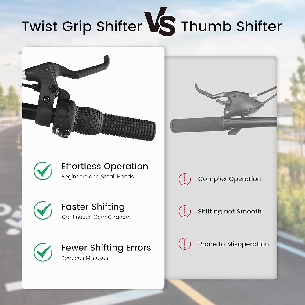 【21-Speed with V-Brakes】The twist Grip Shifter is easy to operate and allows you to quickly shift gears while riding different terrains. The brakes are V-brakes, which are sensitive and easy to maintain.